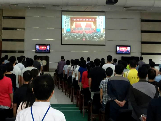 10月18日上午,廣州生物院組織全院職工、學生黨員在學術報告廳集中收看中國共產黨第十九次全國代表大會開幕式。