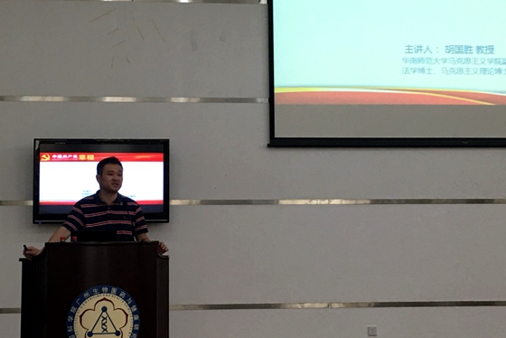 華南師范大學胡國勝教授就新修訂的黨章、憲法學習的時代背景、學習意義并結合時政熱點進行了輔導與講解。