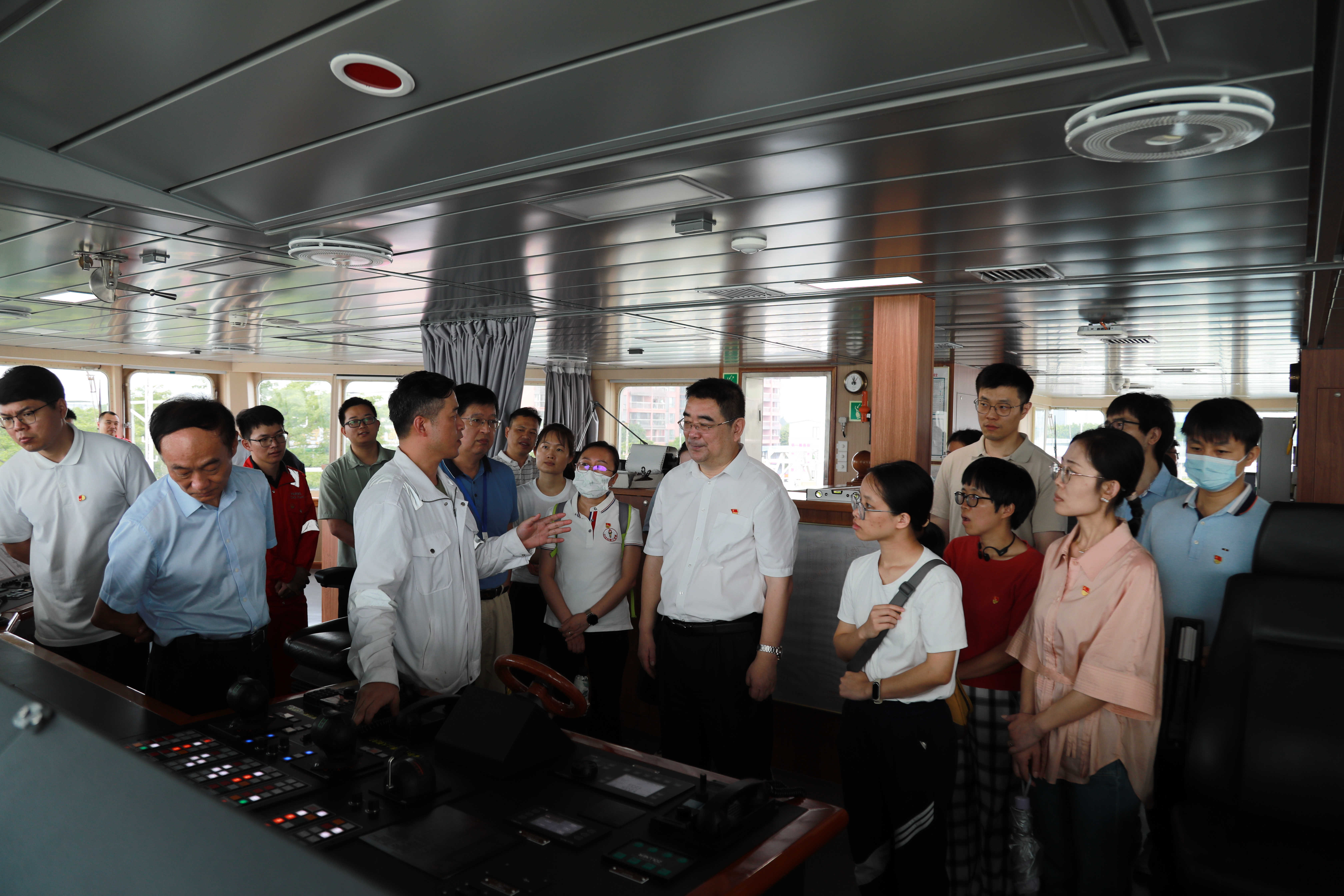 黨員們興致勃勃地登上“實(shí)驗(yàn)6”號科考船,參觀船舶的“心臟地帶--集控室”、駕駛室等艙室,仔細(xì)了解各種科考設(shè)施設(shè)備的作用和功能。在講解員生動形象的講述中,大家對我國海洋科事業(yè)的發(fā)展進(jìn)步有了更多的認(rèn)識,對科考人員無私奉獻(xiàn)和積極進(jìn)取的精神有了更深的感悟。
