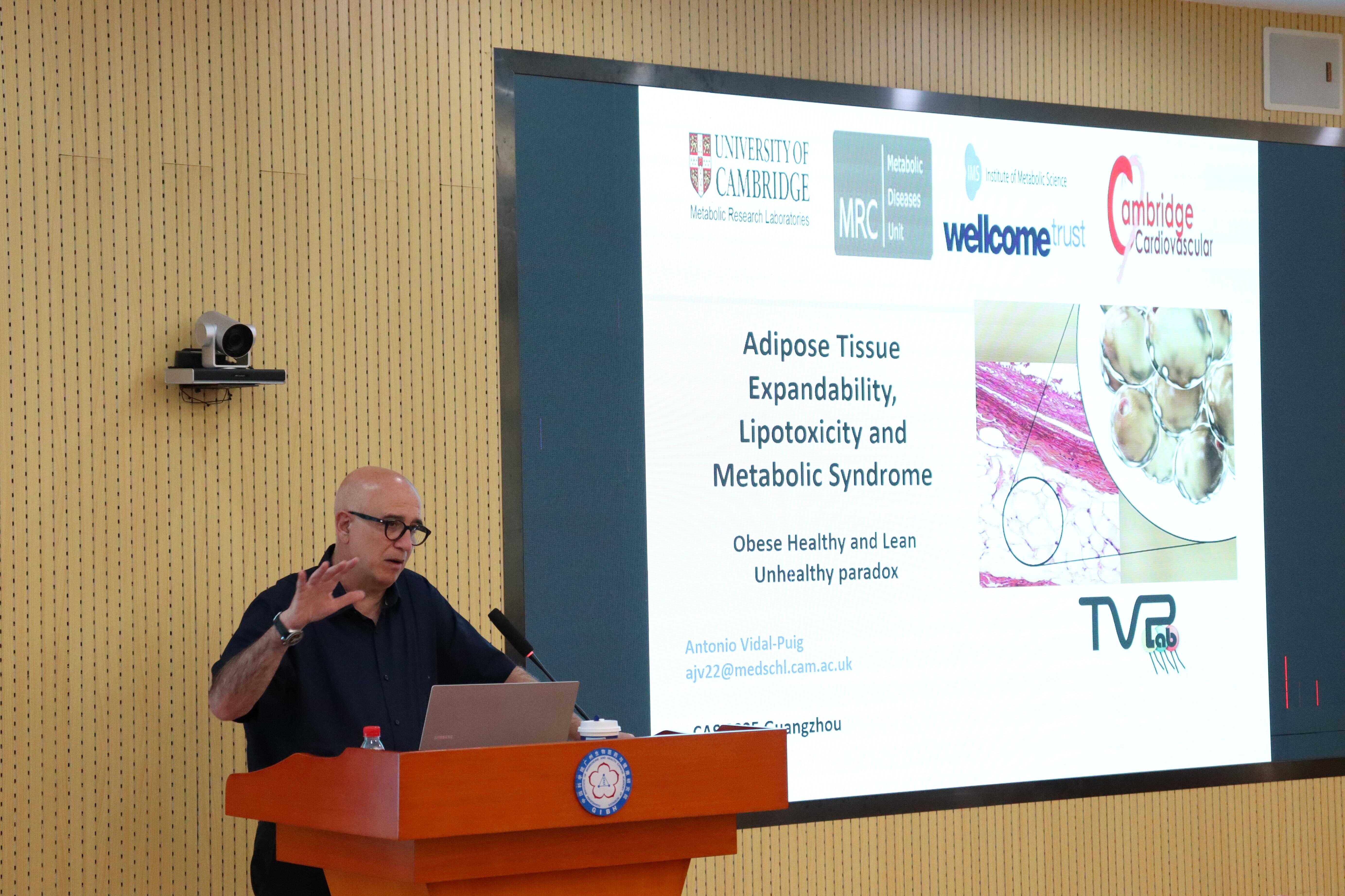 2025年8月14日,歐洲科學(xué)院(MAE)、英國醫(yī)學(xué)科學(xué)院(FMedSci)、英國皇家醫(yī)學(xué)院(FRCP)院士Antonio Vidal-Puig教授應(yīng)廣州健康院邀請開展學(xué)術(shù)交流,并作題為“Adipose tissue expandability lipotoxicity and metabolic syndrome”的學(xué)術(shù)報(bào)告。本次活動由孫偉副研究員主持,院內(nèi)多名科研人員和學(xué)生共同參與。