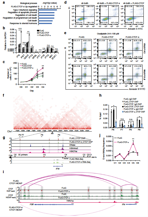 闡明了CTCF短的可變剪接體在調(diào)節(jié)染色質(zhì)高級(jí)結(jié)構(gòu)動(dòng)態(tài)變化方面具有與經(jīng)典CTCF不同的特征,揭示了CTCF短的可變剪接體在調(diào)控細(xì)胞命運(yùn)決定中的新功能(2019,Nature Communications)。