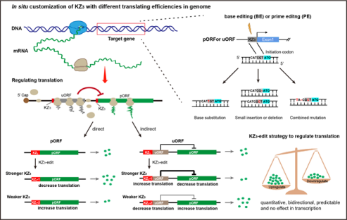 該研究以蛋白翻譯調(diào)控元件—Kozak序列為切入點(diǎn),開發(fā)出一種普適、高效、靈活的基因翻譯調(diào)控新策略,可以對目標(biāo)基因起始密碼子前三個堿基進(jìn)行直接基因編輯,從而實(shí)現(xiàn)雙向定量調(diào)控目標(biāo)基因翻譯水平的效果。這種策略理論上可以應(yīng)用于真核生物所有的編碼基因,且該策略調(diào)控翻譯的有效性、設(shè)計(jì)簡便性以及應(yīng)用多樣性將為基因功能研究、人類遺傳疾病模型構(gòu)建與治療、農(nóng)業(yè)精準(zhǔn)分子設(shè)計(jì)育種等提供重要的技術(shù)手段。相關(guān)成果于2023年8月31日發(fā)表在Nucleic Acids Research上。