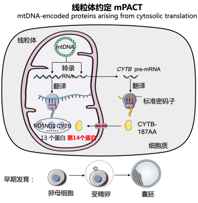 該研究發(fā)現(xiàn)并證實了線粒體基因細胞色素b可編碼一個新的線粒體基因編碼胞質翻譯的蛋白CYTB-187AA,進一步表明CYTB-187AA在胞質翻譯后定位到線粒體基質中,通過能量通用貨幣“三磷酸腺苷”依賴的方式調控早期發(fā)育,在哺乳動物的早期發(fā)育中發(fā)揮重要作用。該研究改寫了教科書中“線粒體基因組編碼13個蛋白”的論斷,發(fā)現(xiàn)CYTB基因可以使用胞質核糖體的標準遺傳密碼編碼第14個全新蛋白質,為線粒體的基礎生物學功能探索提供新角度。相關成果發(fā)表在Cell Metabolism上。?