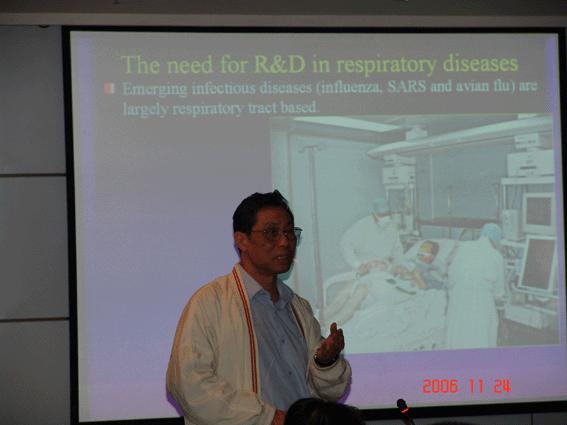 本次會(huì)議的主要目的為進(jìn)一步發(fā)揮各自優(yōu)勢、增進(jìn)相互了解,特別是對雙方的研究方向、感興趣和研究中存在的問題、雙方需求等方面進(jìn)行研討,以及聯(lián)合實(shí)驗(yàn)室人員對呼吸系統(tǒng)疾病有一個(gè)更全面的了解。會(huì)上鐘南山院士作了“呼吸疾病聯(lián)合實(shí)驗(yàn)室的研究與發(fā)展趨勢”、陳凌院長作了“流感和禽流感疫苗與藥物研究”、裴端卿副院長作了“基于EGFR基因突變非小細(xì)胞肺癌新藥開發(fā)”的研究報(bào)告,雙方相關(guān)的科研人員也作了有關(guān)研究報(bào)告。