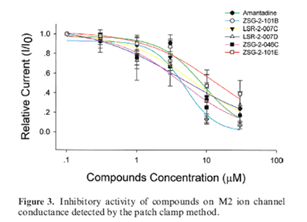 廣州生物院胡文輝課題組通過多學科的密切合作,使用 “骨架遷越”設計策略構(gòu)建了一個小分子化合物庫,通過對該庫化合物進行抗流感病毒的篩選,獲得了多個對野生型流感病毒有抑制作用的苗頭化合物,這些化合物的活性相當于或高于陽性對照物,但結(jié)構(gòu)新穎多樣。該發(fā)現(xiàn)對尋找高活性的M2離子通道抑制劑、研究M2離子通道的作用機制以及新型抗流感藥物的研發(fā)具有重要意義,也證明了“骨架遷越”是一種高效、低成本的尋找苗頭化合物的設計策略。該成果已于2010年4月在《Journal of Medicinal Chemistry》上發(fā)表。