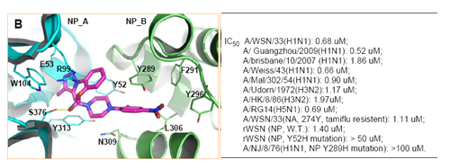 甲型流感是嚴(yán)重威脅人類(lèi)健康的傳染性疾病。盡管目前在流感的防治方面,已有上市的疫苗和藥物,但是由于流感病毒的易突變并產(chǎn)生耐藥等特性,第一代抗病毒藥物金剛烷胺和第二代抗病毒藥物達(dá)菲已出現(xiàn)了嚴(yán)重的耐藥性和副作用。因此,開(kāi)發(fā)出具有新作用機(jī)制安全有效的抗甲型流感藥物變得十分重要。