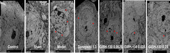 疾病模型小鼠腦部海馬體切片對(duì)比圖:口服GIBH-130能夠?qū)ι窠?jīng)元起到保護(hù)作用