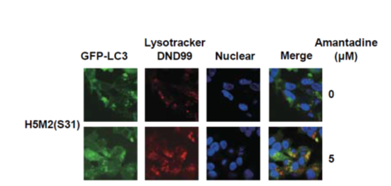 細(xì)胞自噬是真核細(xì)胞中高度保守的,通過(guò)降解細(xì)胞中的細(xì)胞器、長(zhǎng)壽命蛋白來(lái)維持細(xì)胞穩(wěn)態(tài)的重要生理過(guò)程。在病毒、細(xì)菌等微生物感染時(shí),細(xì)胞自噬可通過(guò)降解病毒成分等抵御微生物感染,是機(jī)體對(duì)感染的重要防御機(jī)制。在流感病毒感染宿主細(xì)胞時(shí),細(xì)胞自噬參與流感病毒誘導(dǎo)的炎癥反應(yīng),特別是參與高致病性禽流感病毒誘導(dǎo)的過(guò)度炎癥反應(yīng)。研究人員通過(guò)深入研究發(fā)現(xiàn),M2蛋白通過(guò)其離子通道活性阻斷細(xì)胞自噬體與溶酶體的融合而抑制細(xì)胞自噬的降解,同時(shí)證實(shí)M2蛋白阻斷自噬不依賴Beclin1/PI3 Kinase復(fù)合物信號(hào)途徑。此項(xiàng)研究對(duì)進(jìn)一步闡明流感病毒對(duì)細(xì)胞自噬的作用機(jī)制及進(jìn)一步探索細(xì)胞自噬在流感病毒感染過(guò)程中介導(dǎo)炎癥反應(yīng)及肺損傷的機(jī)制提供了重要線索,并為研究通過(guò)干預(yù)減輕高致病性禽流感病毒感染引起的過(guò)度炎癥反應(yīng)及肺損傷的策略提供重要依據(jù)。