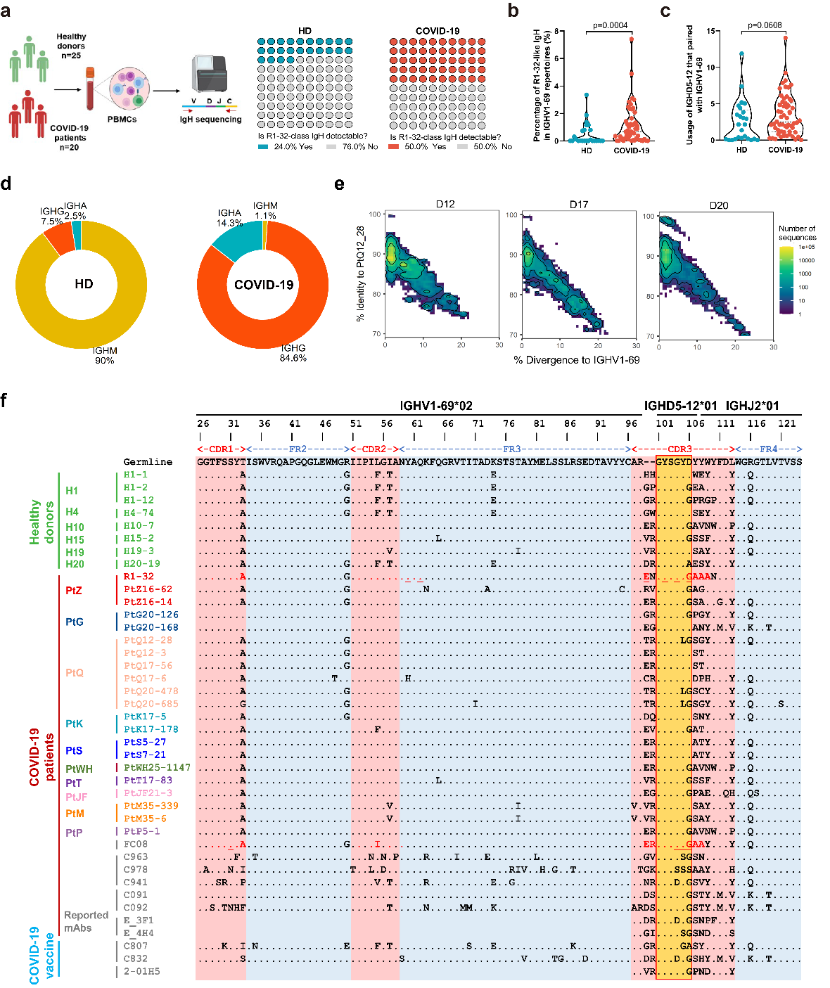 圖2:R1-32類抗體在人群的廣泛存在并COVID-19患者中快速誘導(dǎo)產(chǎn)生