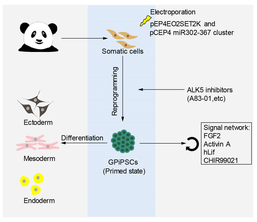 大熊貓誘導多能干細胞研究模式圖