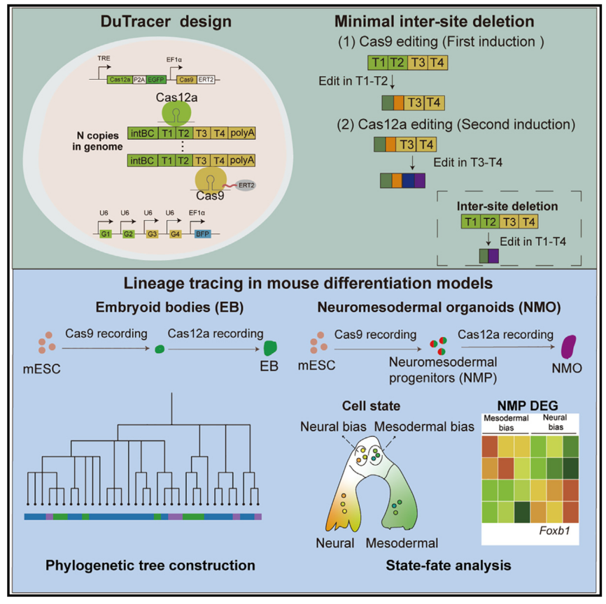 DuTracer的創(chuàng)新之處在于同時利用Cas9和Cas12a兩種核酸酶,并通過控制它們的激活時間,有效避免多靶點同時編輯引發(fā)的干擾。實驗顯示,該技術(shù)在小鼠胚胎干細胞和類器官模型中成功降低了90%以上的有害刪除事件,記錄的細胞分裂層級更深,能更精準地還原細胞分化路徑。