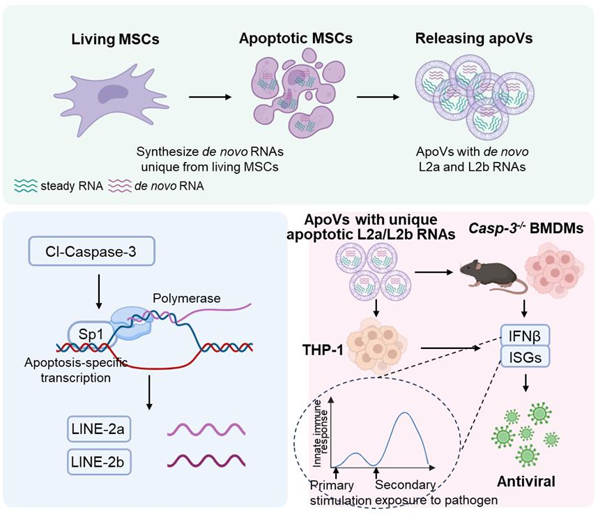 廣州健康院合作揭示凋亡細(xì)胞從頭合成特異L2a/L2b RNA發(fā)揮抗病毒功能