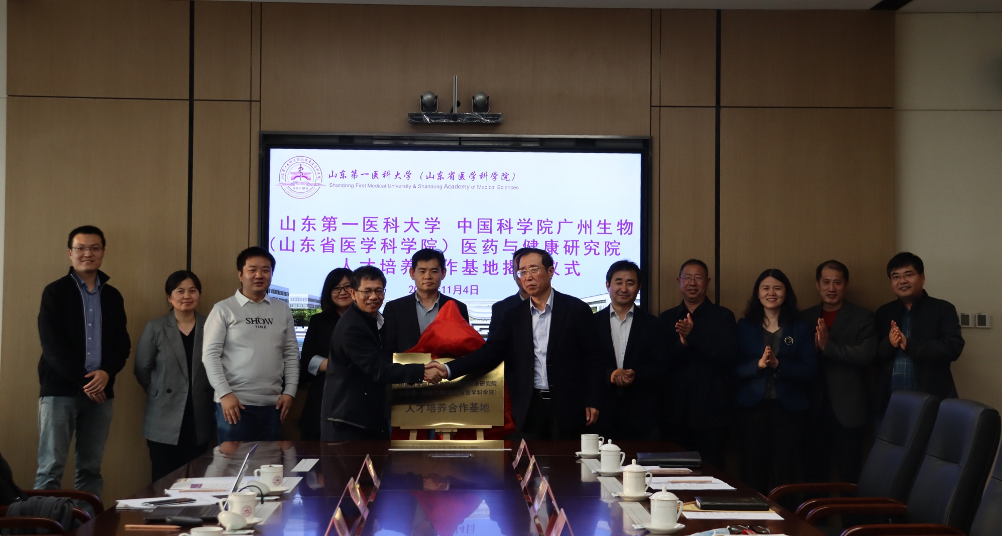 11月4日,廣州健康院與山東第一醫(yī)科大學(xué)(山東省醫(yī)學(xué)科學(xué)院)在山東第一醫(yī)科大學(xué)濟(jì)南主校區(qū)舉行人才培養(yǎng)合作基地揭牌儀式。廣州健康院院長(zhǎng)陳新文、副院長(zhǎng)潘光錦,山東第一醫(yī)科大學(xué)(山東省醫(yī)學(xué)科學(xué)院)黨委書記韓金祥出席儀式。