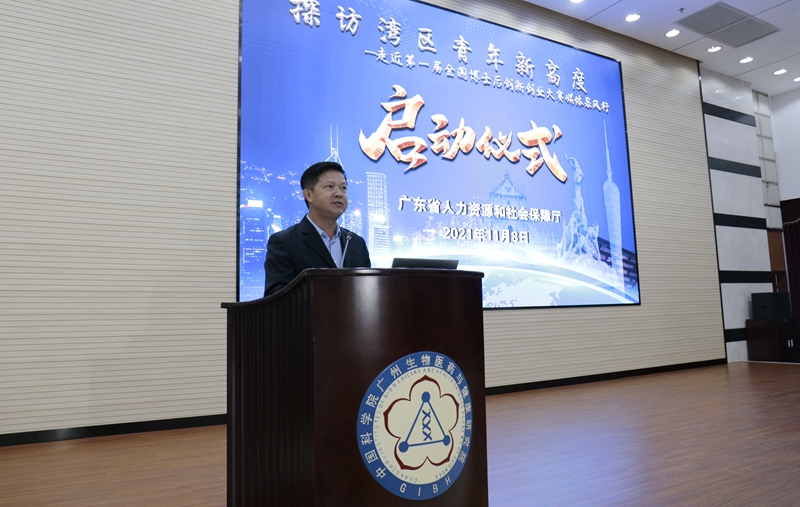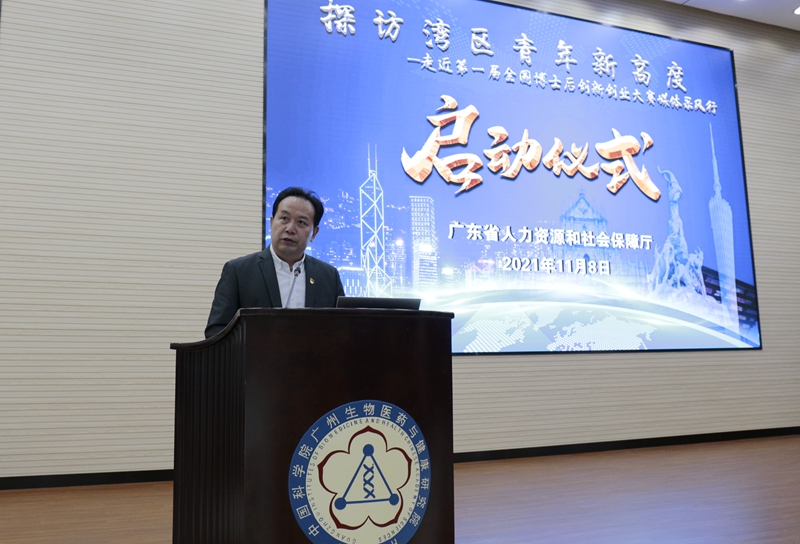 11月8日,由廣東省人社廳組織的“探訪灣區(qū)青年新高度”走進第一屆博士后創(chuàng)新創(chuàng)業(yè)大賽媒體采風(fēng)行啟動儀式在廣州健康院舉辦。人民日報、新華社、總臺等二十幾家主流媒體等受邀走進我院,深入了解博士后制度在引進、培養(yǎng)青年人才和有效促進廣東高質(zhì)量發(fā)展上的顯著成效。廣東省人社廳副廳長楊紅山、廣州市人社局一級調(diào)研員陳玉元以及省、市、區(qū)人社相關(guān)部門負(fù)責(zé)人等出席啟動儀式。