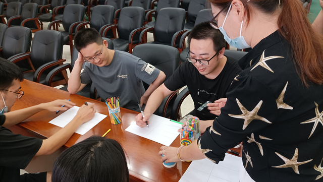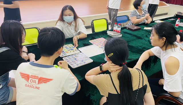 活動中,廣州市心理咨詢師協(xié)會老師將參加活動的學(xué)生進(jìn)行分組,使用曼陀羅動力棋、OH卡等趣味心理體驗工具與同學(xué)們進(jìn)行互動心理游戲,引導(dǎo)同學(xué)們通過心理繪畫的形式檢測自身的心理狀態(tài)。通過以上活動,心理老師幫助同學(xué)們進(jìn)一步探索自我、提升心理能量,引導(dǎo)同學(xué)們?nèi)绾蚊鎸Щ蠛徒箲],找尋釋放壓力的方法和途徑。