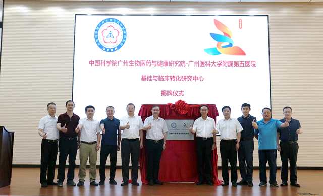 6月12日下午,由中國科學院廣州生物醫(yī)藥與健康研究院(下稱“廣州健康院”)和廣州醫(yī)科大學附屬第五醫(yī)院(下稱“廣醫(yī)五院”)合作共建的基礎與臨床轉化研究中心正式揭牌成立。
