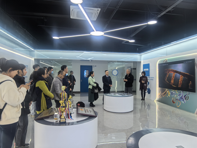 活動(dòng)中,雙方分別介紹了支部的建設(shè)情況,并圍繞黨建活動(dòng)、青年活動(dòng)、科研項(xiàng)目、科研平臺(tái)、學(xué)術(shù)交流等展開交流。廣州健康院黨委書記、副院長段子淵表示,通過支部的合作共建,將進(jìn)一步推動(dòng)基礎(chǔ)研究與臨床研究深度融合,加快健康院研究成果臨床轉(zhuǎn)化和應(yīng)用。廣醫(yī)五院副院長秦大江介紹了醫(yī)院的建設(shè)情況并分享其在廣州健康院工作的經(jīng)歷。他談到,廣州健康院和廣醫(yī)五院擁有良好的合作基礎(chǔ),相信通過支部合作,必能提升醫(yī)院的科研創(chuàng)新能力,助推高質(zhì)量發(fā)展。廣醫(yī)五院機(jī)關(guān)第三黨支部還參觀了廣州健康院科學(xué)家精神教育基地、分析測試中心和生物醫(yī)學(xué)數(shù)據(jù)和超算中心等。