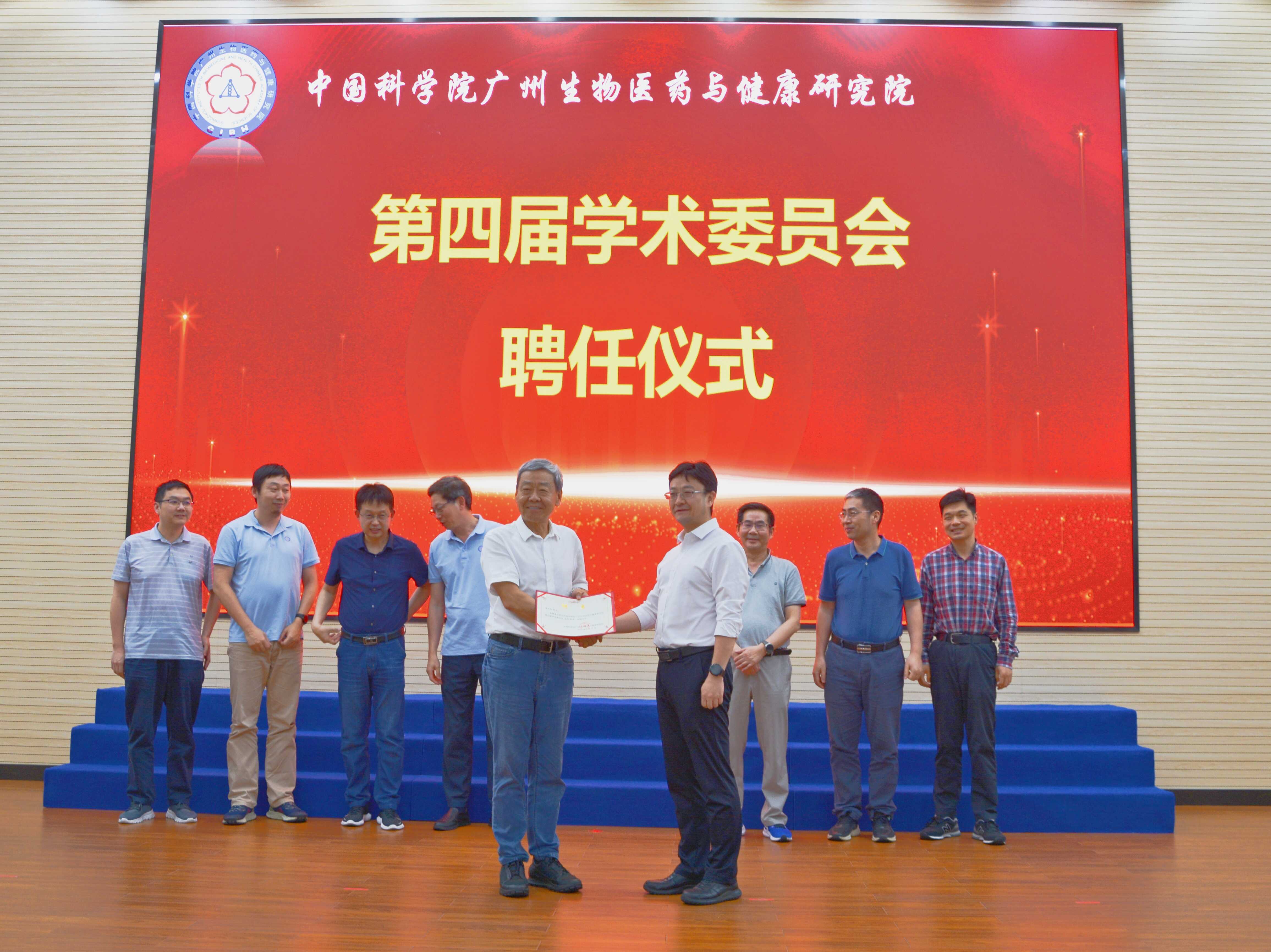 2024年5月31日下午,廣州健康院第四屆學(xué)術(shù)委員會第一次全體會議暨學(xué)術(shù)委員會委員聘任儀式,學(xué)術(shù)委員會主任饒子和院士出席,孫飛副院長(主持工作)為學(xué)術(shù)委員會委員頒發(fā)聘書并合影,黨委副書記、紀(jì)委書記徐海主持聘任儀式。