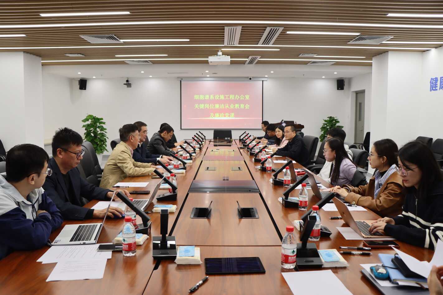 12月9日,廣州健康院召開人類細(xì)胞譜系大科學(xué)研究設(shè)施(以下簡稱 “細(xì)胞譜系設(shè)施”)工程辦公室關(guān)鍵崗位廉潔從業(yè)教育會(huì)議,廣州健康院黨委副書記、紀(jì)委書記徐海講授題為《遵規(guī)守紀(jì),廉潔從業(yè)》的廉政黨課。細(xì)胞譜系設(shè)施副總經(jīng)濟(jì)師徐紅飛、設(shè)施紀(jì)檢小組成員莫煒瑜、工程辦公室全體人員參加會(huì)議。