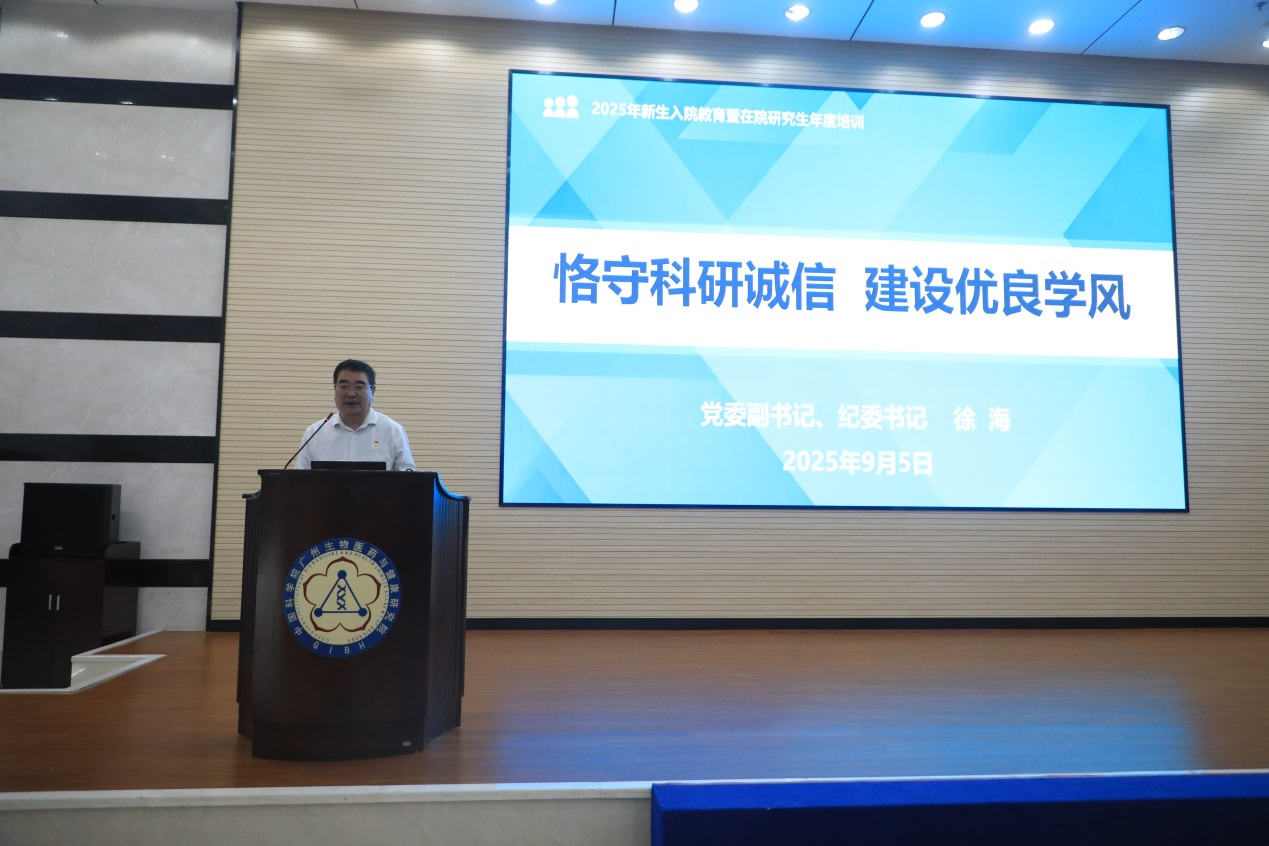 金秋九月,萬象更新。為落實(shí)立德樹人的根本任務(wù),引導(dǎo)學(xué)生堅(jiān)定理想信念、樹立遠(yuǎn)大目標(biāo),9月5日,中國科學(xué)院廣州生物醫(yī)藥與健康研究院(以下簡(jiǎn)稱“廣州健康院”)組織開展“書記講黨課”暨2025年學(xué)生“入院第一課”專題培訓(xùn)。新入院研究生及在院學(xué)生黨員共同參加學(xué)習(xí)。