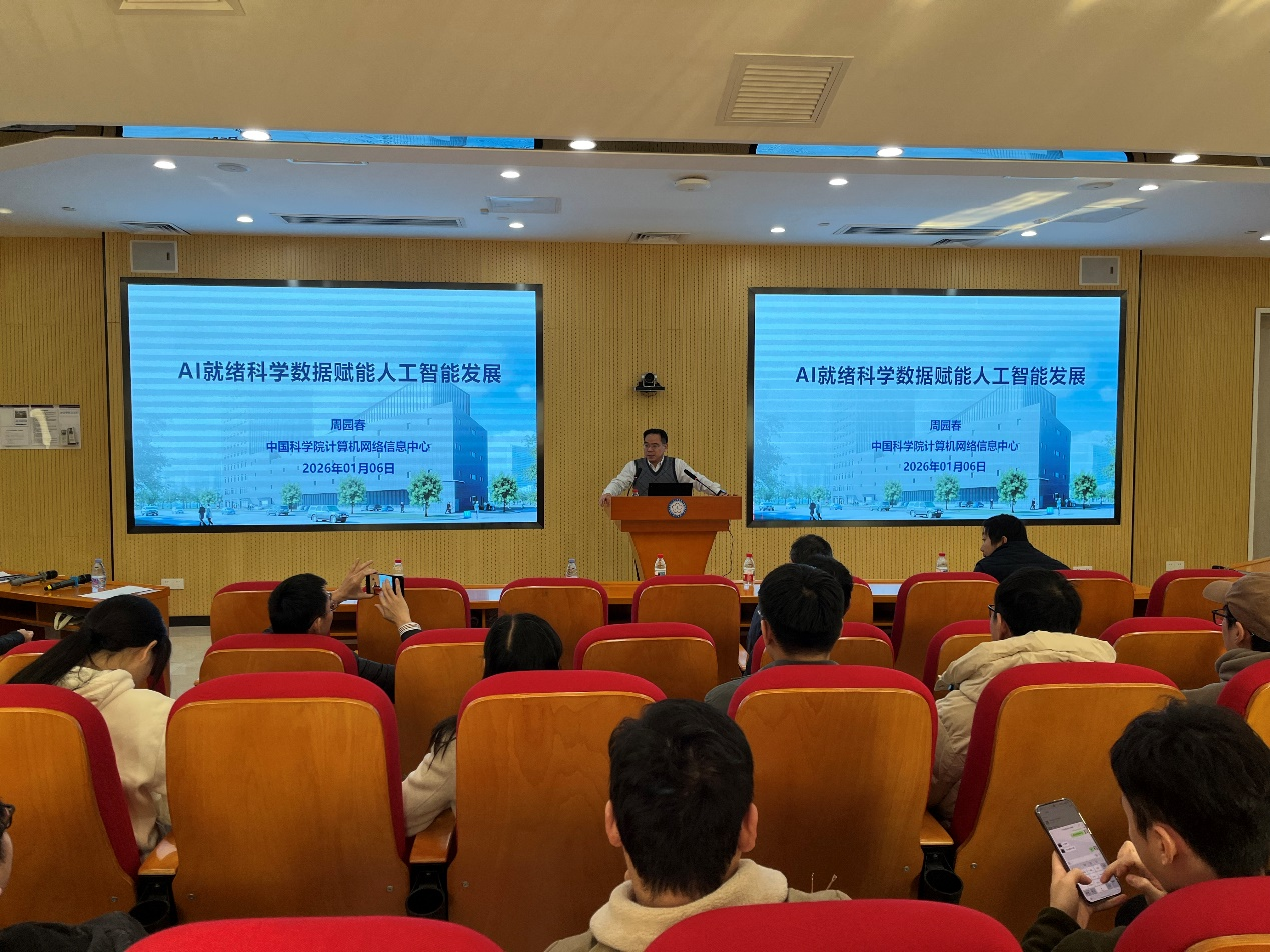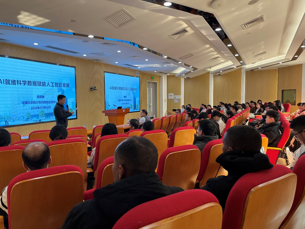 2026年1月6日,中國科學(xué)院計(jì)算機(jī)網(wǎng)絡(luò)信息中心研究員周園春到訪中國科學(xué)院廣州生物醫(yī)藥與健康研究院(以下稱“廣州健康院”),并作題為《AI就緒科學(xué)數(shù)據(jù)賦能人工智能發(fā)展》的學(xué)術(shù)報(bào)告。本次報(bào)告由廣州健康院副院長(主持工作)孫飛主持,吸引了院內(nèi)近百名科研人員與學(xué)生參會。