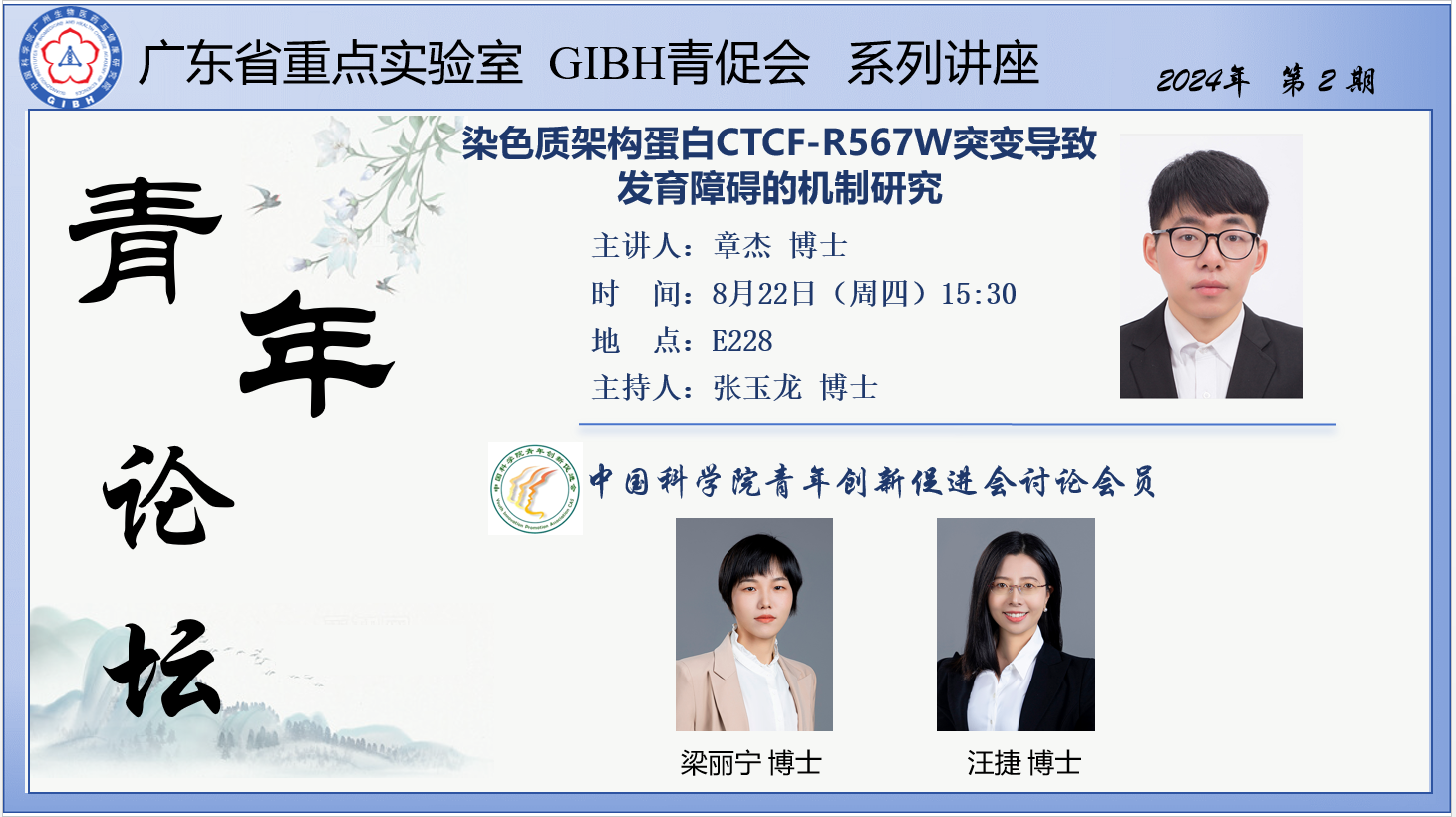 2024年8月22日廣東省重點(diǎn)實(shí)驗(yàn)室GIBH青促會系列講座(2024年第2期):染色質(zhì)架構(gòu)蛋白CTCF-R567W突變導(dǎo)致發(fā)育障礙的機(jī)制研究