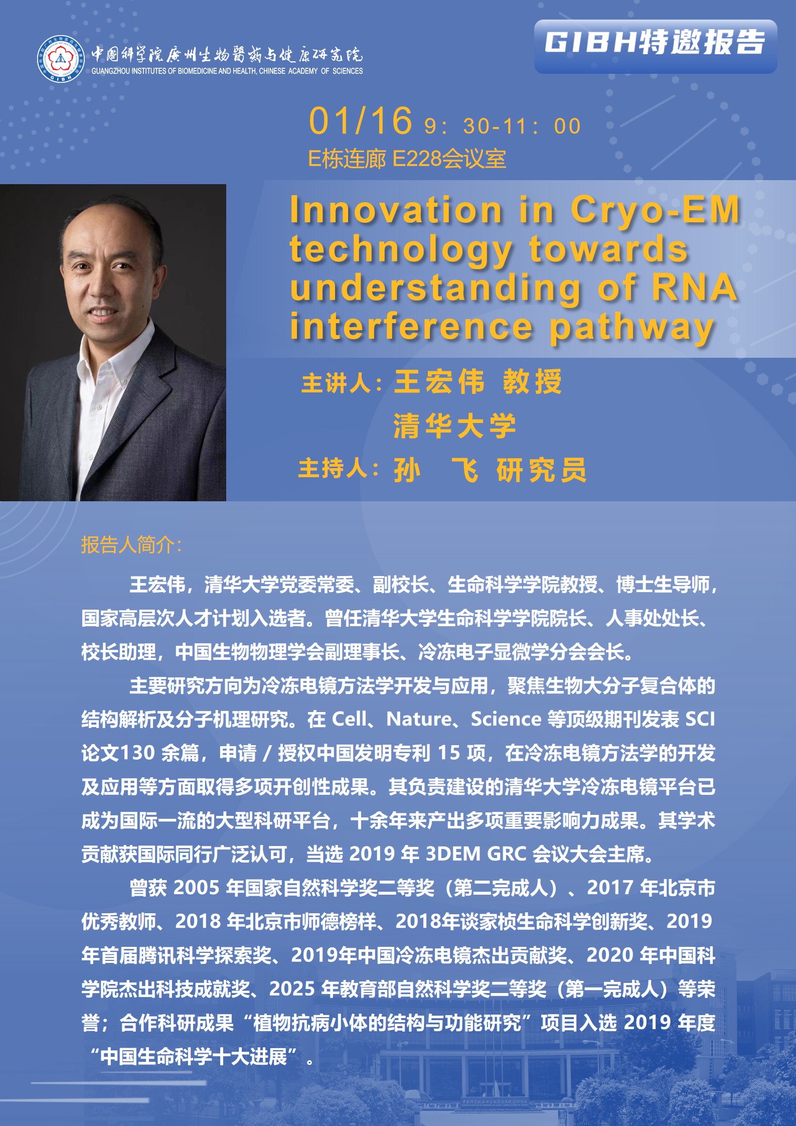 2026年1月16日特邀報(bào)告:Innovation in Cryo-EM technology towards understanding of RNA interference pathway