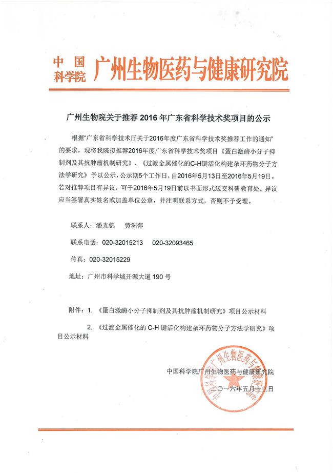 2.《過渡金屬催化的C-H鍵活化構(gòu)建雜環(huán)藥物分子方法學(xué)研究》項目公示材料?