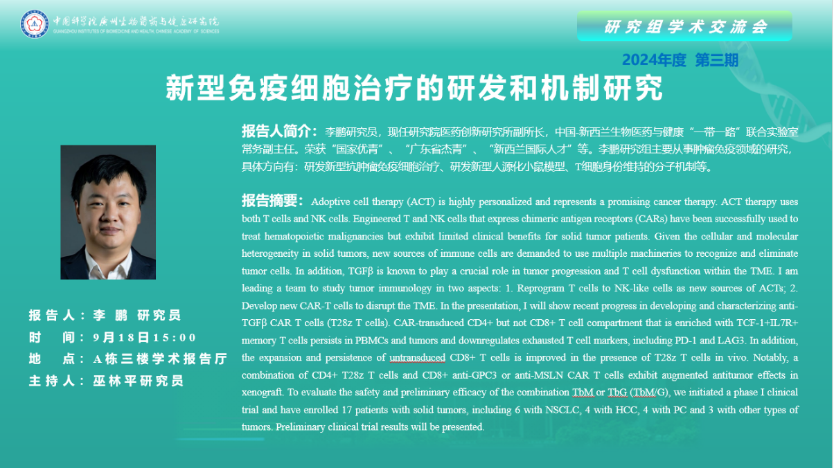 2024年9月18日研究組學(xué)術(shù)交流會(2024年第三期):新型免疫細(xì)胞治療的研發(fā)和機制研究