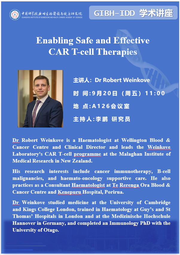 2024年9月20日院醫(yī)藥創(chuàng)新研究所(GIBH-IDD)學(xué)術(shù)講座:Enabling Safe and Effective CAR T-cell Therapies