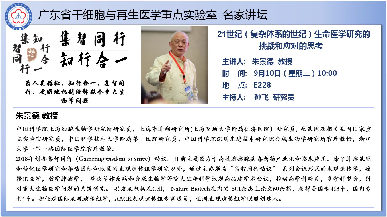 2024年9月10日廣東省干細(xì)胞與再生醫(yī)學(xué)重點實驗室名家講壇:21世紀(jì)(復(fù)雜體系的世紀(jì))生命醫(yī)學(xué)研究的挑戰(zhàn)和應(yīng)對的思考