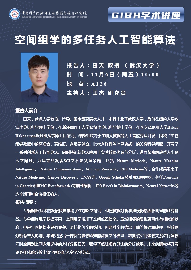 2024年12月6日學(xué)術(shù)講座:空間組學(xué)的多任務(wù)人工智能算法
