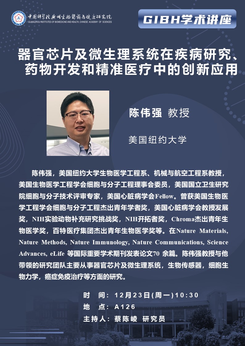 2024年12月23日學(xué)術(shù)講座:器官芯片及微生理系統(tǒng)在疾病研究、藥物開(kāi)發(fā)和精準(zhǔn)醫(yī)療中的創(chuàng)新應(yīng)用