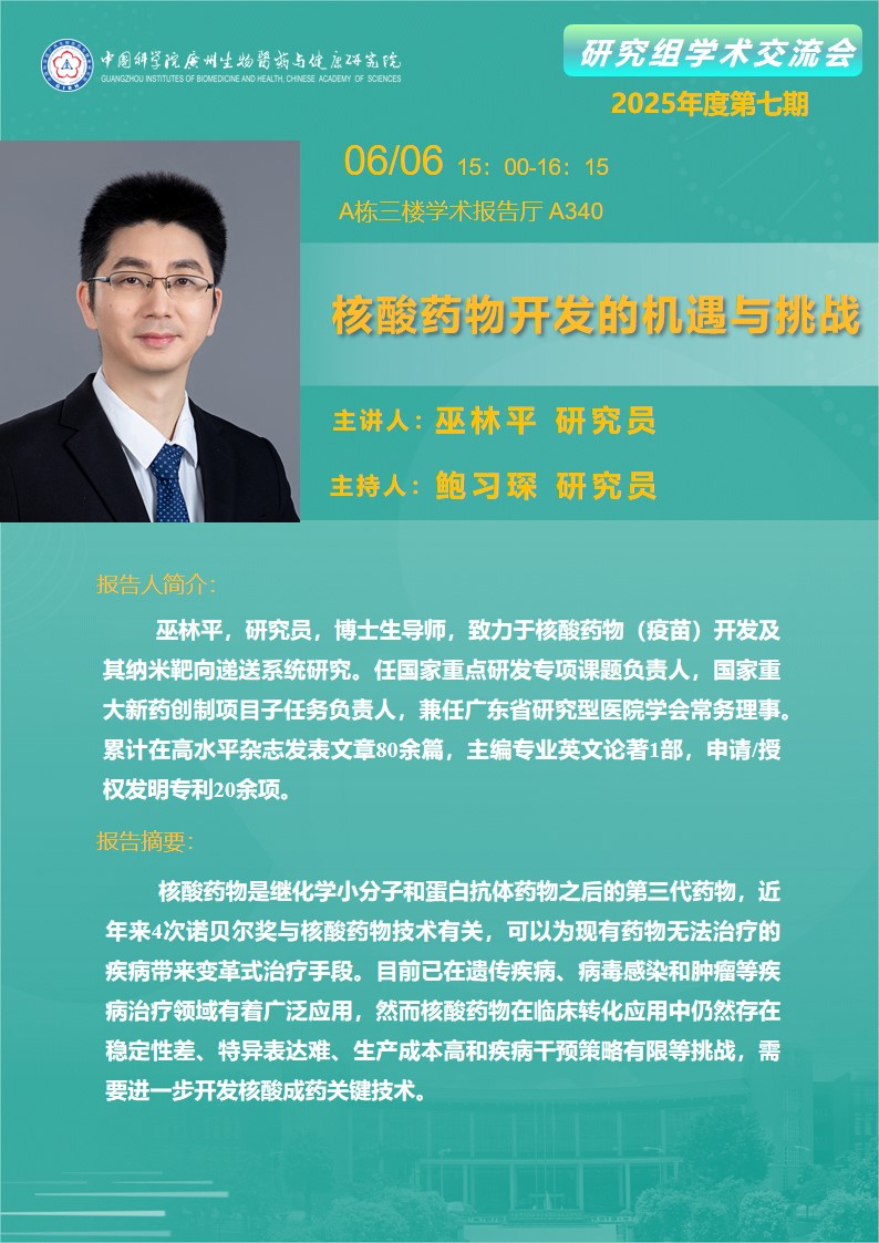 2025年6月6日研究組學(xué)術(shù)交流會(huì)(2025年度第七期):核酸藥物開發(fā)的機(jī)遇與挑戰(zhàn)