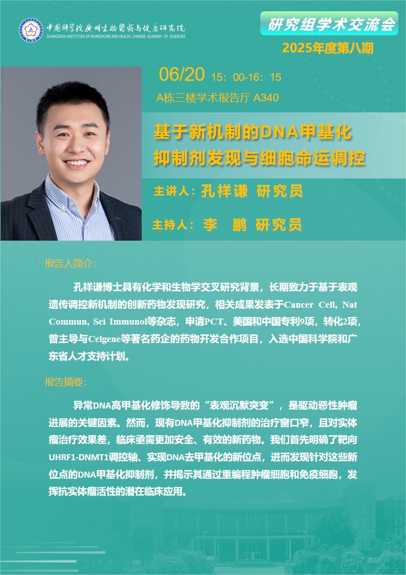 2025年6月20日研究組學(xué)術(shù)交流會(huì)(2025年度第八期):基于新機(jī)制的DNA甲基化抑制劑發(fā)現(xiàn)與細(xì)胞命運(yùn)調(diào)控