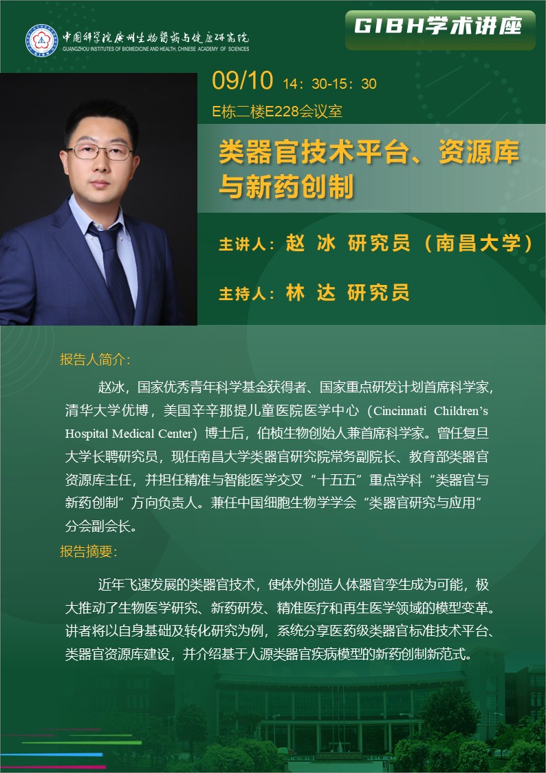 2025年9月10日學術(shù)講座:類器官技術(shù)平臺、資源庫與新藥創(chuàng)制