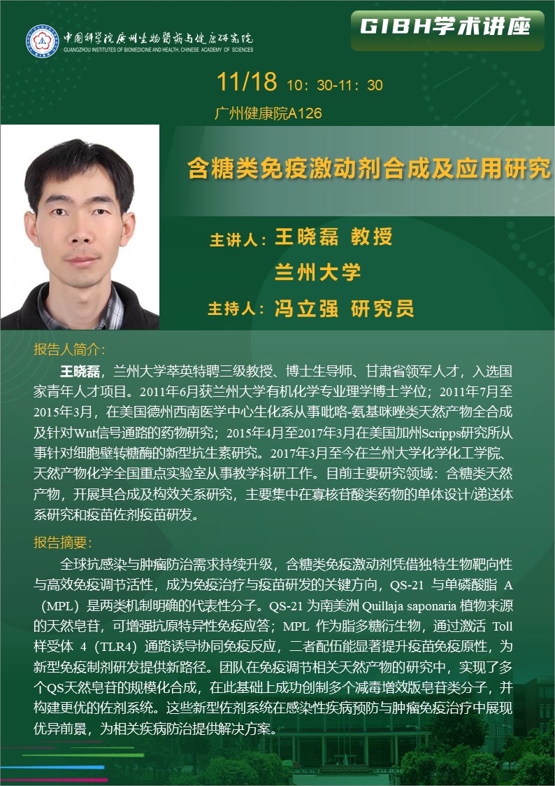 2025年11月18日學術講座:含糖類免疫激動劑合成及應用研究