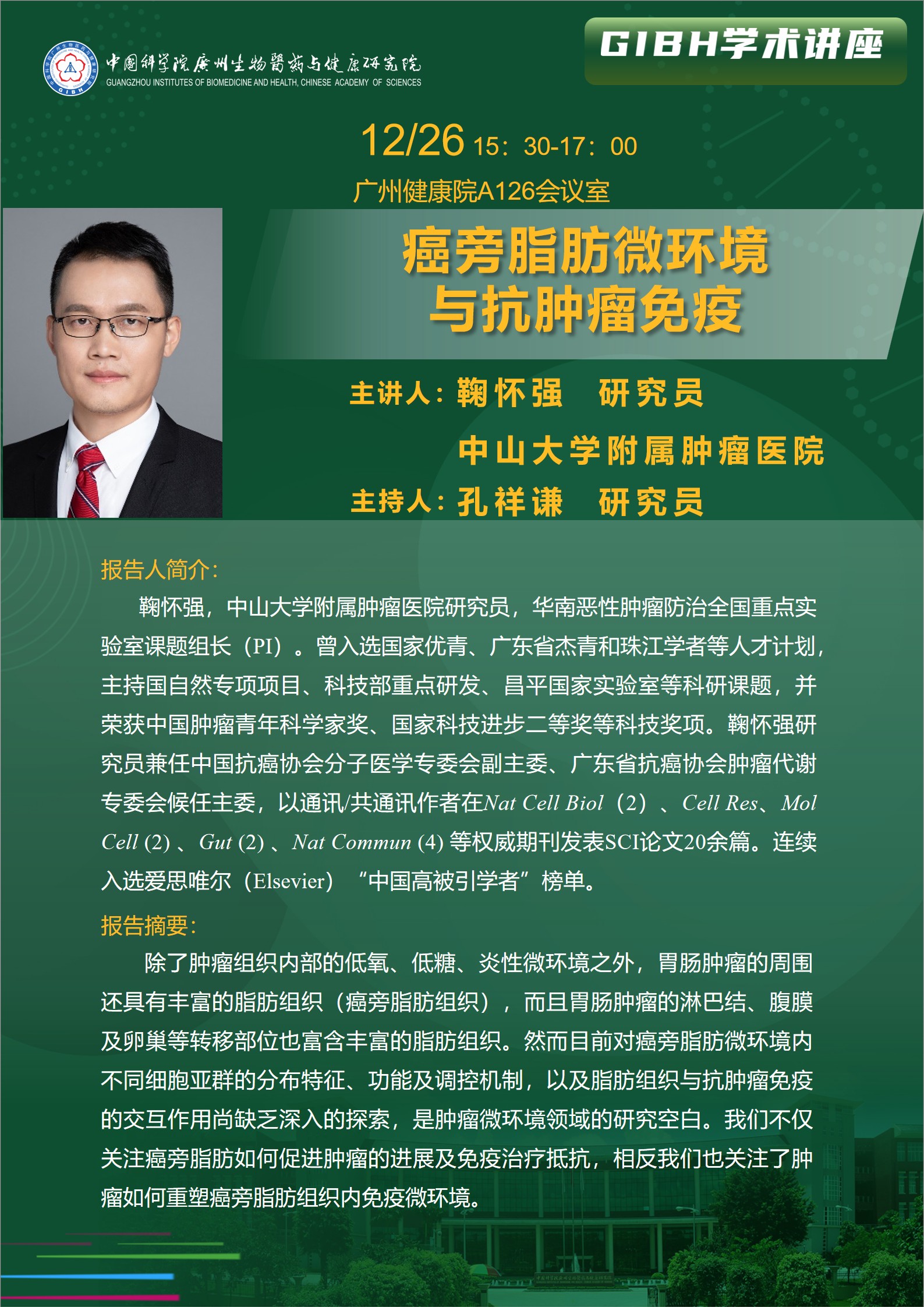 2025年12月26日學(xué)術(shù)講座:癌旁脂肪微環(huán)境與抗腫瘤免疫