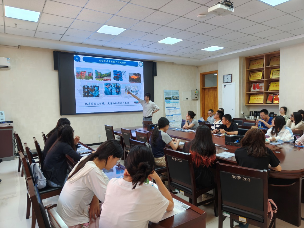 宣講會上,團隊系統(tǒng)介紹了廣州健康院的發(fā)展歷程、學(xué)科架構(gòu)、人才梯隊、標志性科研成果和研究生教育體系等情況。同時結(jié)合 “人類細胞譜系解析與干預(yù)” 這一研究院戰(zhàn)略科技主攻方向分享了最新科研成果,充分展現(xiàn)了廣州健康院承擔國家級重大科研任務(wù)的創(chuàng)新能力,讓在場師生對廣州健康院前沿科研布局與創(chuàng)新人才培養(yǎng)體系有了系統(tǒng)認知。