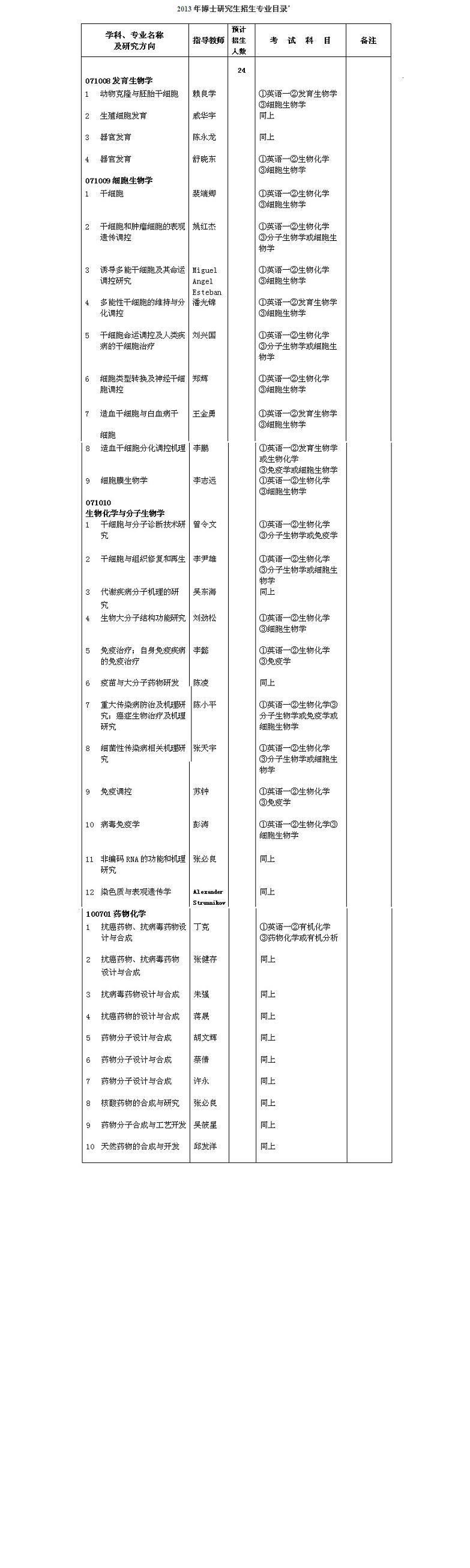 (*注:此招生專業(yè)目錄的“預計招生人數(shù)”僅供參考,實際招生數(shù)以2012年年底國家下達的計劃數(shù)為準;招生人數(shù)已含碩博連讀、提前攻博人數(shù),預計占實際招生人數(shù)的70%。)